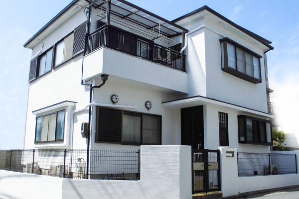 築25年の外壁をジョリパットで塗り替え、真っ白な気品のある、和のモダンテイストな仕…